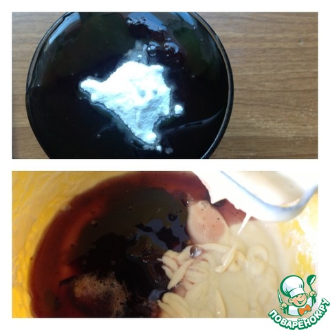 В варенье добавить соду и перемешать. Добавить варенье в тесто и хорошо вымесить.