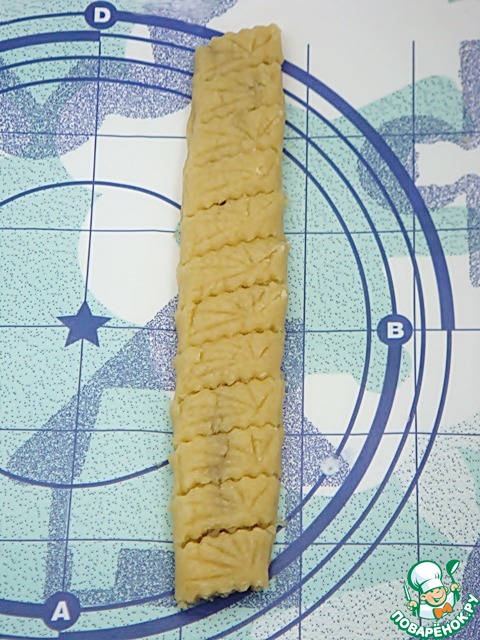 Нанести рисунок обратной стороной лезвия ножа. Нарезать наискосок на порционные части.