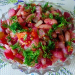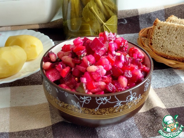 Очень вкусный вариант винегрета - с фасолью и хрустящими огурчиками, с пикантной заправкой.
