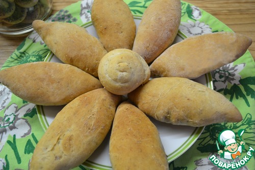 Сформировать пирожки. У меня начинки хватило только на 10 пирожков. Сделала еще просто 2 булочки. Выпекать в духовке при 180-200°С, 30-40 минут.