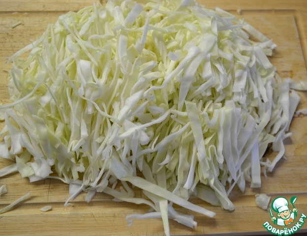 Начинка: нарезать капусту, лук. Пожарить их на растительном масле до готовности.