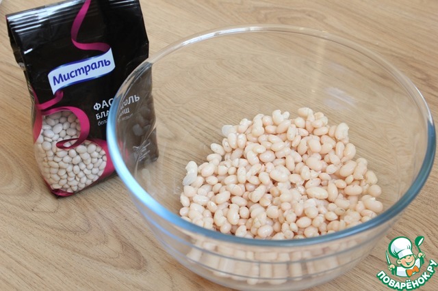 Фасоль заранее замачивают минимум на 4 часа (я замачивала на ночь, готовила утром).