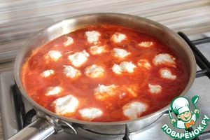 Довожу соус до кипения и опуская в него клёцки.