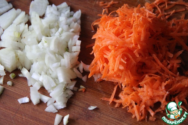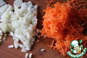 Лук некрупно порезать, морковь натереть на крупной тёрке