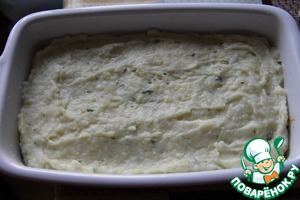 Сверху закрыть все картофельным пюре и разровнять.