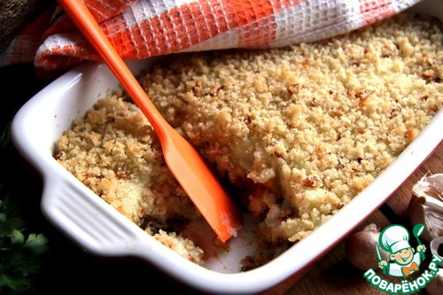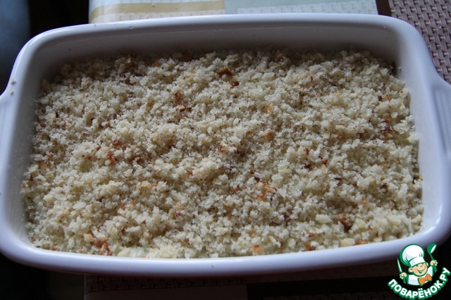 По сути, это уже готовое блюдо и без запекания. Его остается только хорошо прогреть и получить подсушенные, хрустящие крошки.