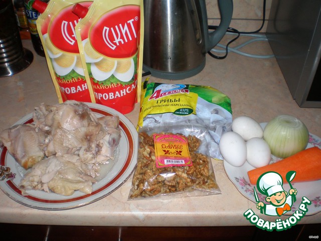 Ингредиенты для «Салат куриный с шампиньонами и орехами»: