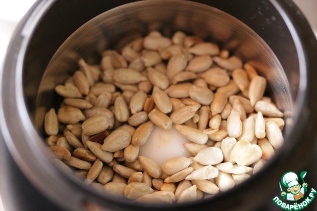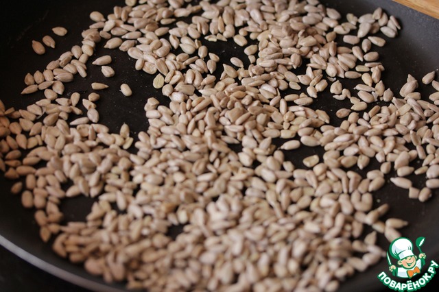 Семечки обжарить на сухой сковороде.