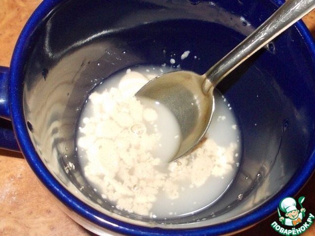 Начинаем с замеса теста. Дрожжи заливаем 2 ст. л. хорошо теплой воды и оставляем ожить минут на 10.