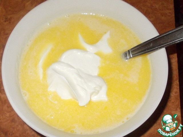 К молоку с маслом добавить сметану, сахар, соль, белок.