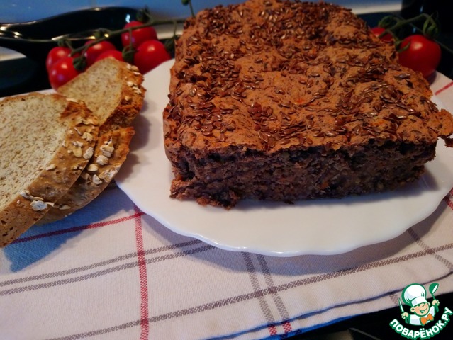Выложить фасрлевую массу, разровнять и сверху присыпать 1 ст л семян льна. -