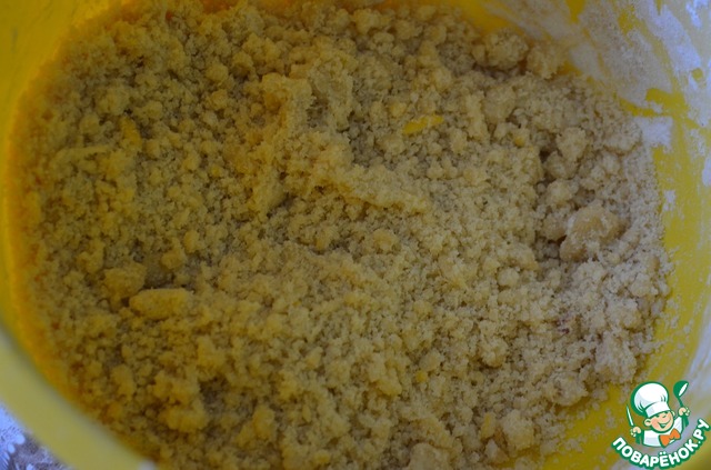 сверху посыпьте тесто-крошку. Выпекайте при 200С около 20 минут.