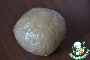 Замесить тесто, завернуть в пленку и оставить в холодильнике на 30 минут.