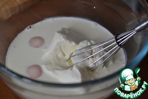В большой миске смешать рикотту, сливки, яйца и соль.