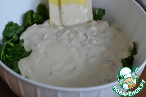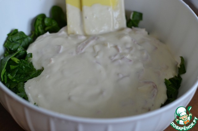 Шпинат помыть. У меня были большие листья и я их нарезала.