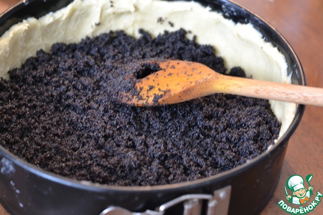 Горячий яблочный пудинг выкладываем на маковую начинку.