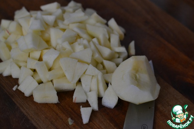 Яблоки почистить и нарезать на маленькие кусочки. -