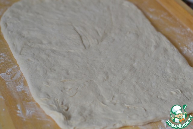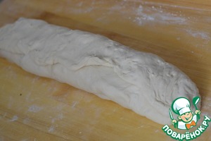 Готовое тесто выкладываем на присыпанную мукой разделочную доску. Работаем руками, нежно и с любовью.