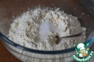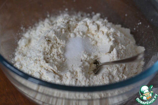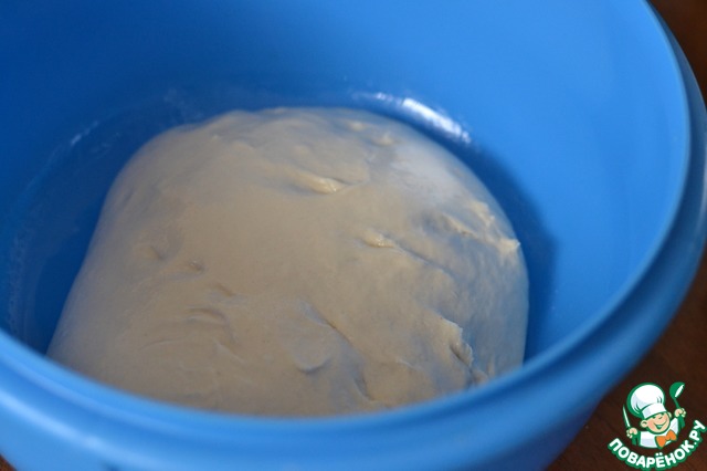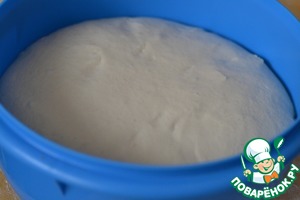 В миске смешать муку, соль, оливковое масло и подошедшие дрожжи.