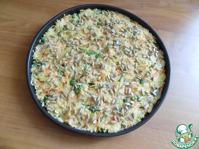Разровняла овощную смесь ровным слоем, присыпала семечками подсолнуха и сбрызнула верх ещё 0,5 ст л оливкового масла, чтобы верх красиво зарумянился. Поставила в духовку разогретую до т-180 С на 20 минут. Ориентируйтесь по своей духовке.