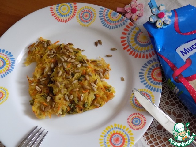 Большой овощной драник из картофеля, лука, моркови и зелёной фасоли с семечками подсолнуха. Для связки в Пост, вместо яйца, применила манную крупу. Драник запекала, так он стал диетичнее и полезней.