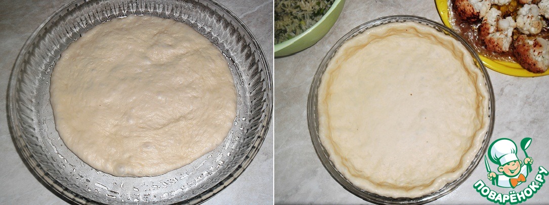 Когда тесто немного отдохнуло, я размяла его по всей поверхности формы, сформировала бортики. -