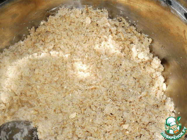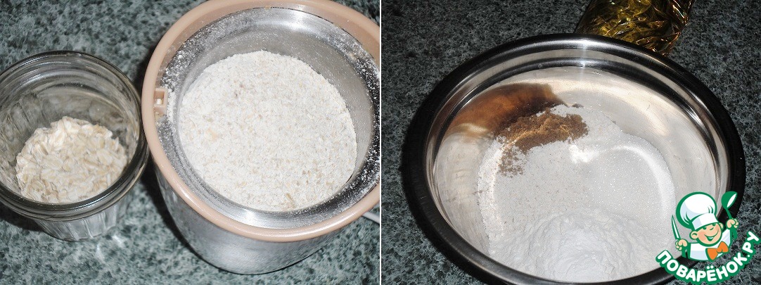 Овсяные хлопья перемолола в кофемолке. Для любителей овсяного печенья, думаю, можно половину количества оставить не молотыми.