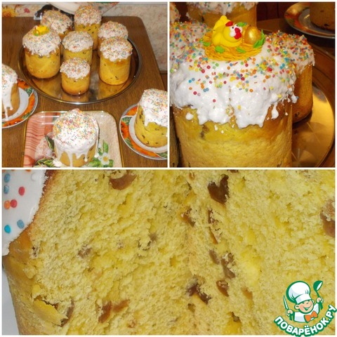У каждой хозяки есть свой любимый рецепт пасхального кулича. И это замечательно! Любимый рецепт проверен годами и результат грантирован. Я в своей копилочке тоже имею такой рецепт и хочу с Вами поделиться. Кулич выходит в разрезе яркий, воздушный, легкий, в меру сладкий с лимонным ароматом! Чем дольше он стоит на столе, тем становится вкуснее, а храню я его, не покрывая глазурью, в полиэтиленовых кульках под закрытой крышкой в большой ёмкости неделю. Если интересно, заходите!