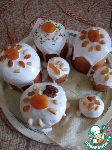 Я глазурь наношу на остывшие куличи. Пользуюсь рецептом глазури вот этим http://www.povarenok .ru/advice/show/1600 /