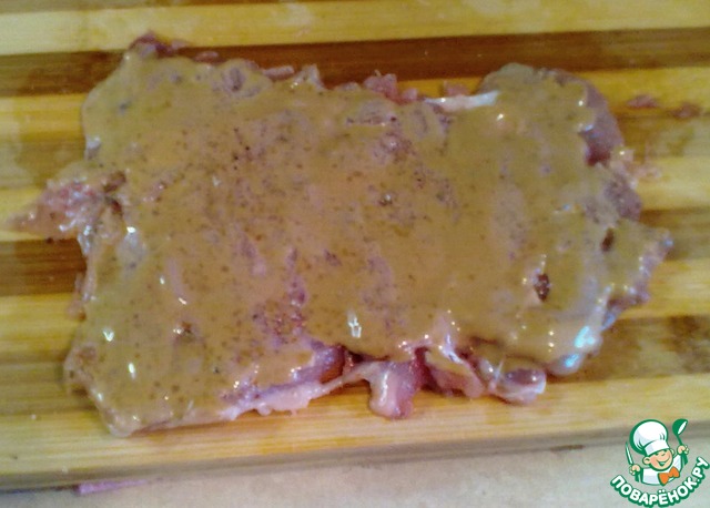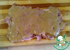 Натереть сухой смесью со всех сторон, намазать по 1 ст. л. майонезной смесью