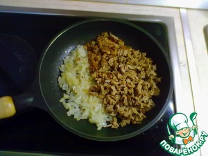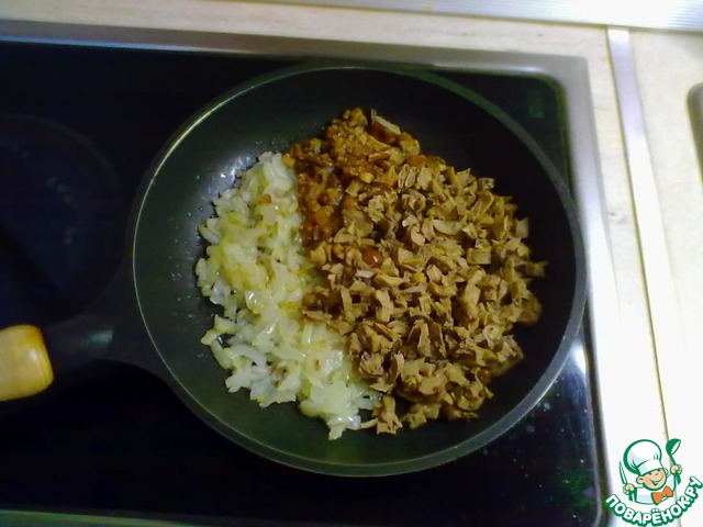 Для начинки подготовить грибы и лук, все мелко нарезать