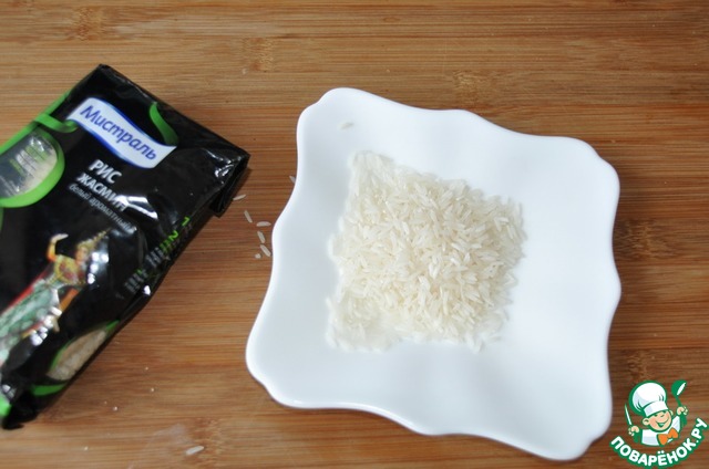Берём рис, я взяла Жасмин от Мистраль. Он быстро варится и хорошо сохраняет форму.