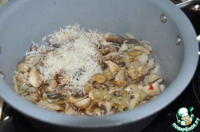 Кладём рис в кастрюлю.