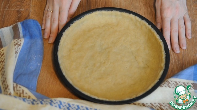 Форму для запекания смазываем маслом и посыпаем мукой, выкладываем тесто в форму и распределяем по дну и бортикам. Убираем в морозилку на 15 минут. Через 15 минут достаем тесто из морозилки и запекаем в разогретой до 190 С 20 минут, до легкого зарумянивания. Затем даем остыть при комнатной t.