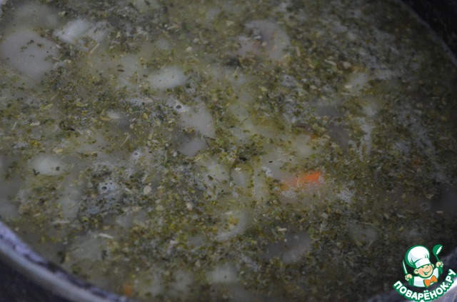 Затем добавьте поджаренные овощи, пюре из нута. Варите 15 минут.