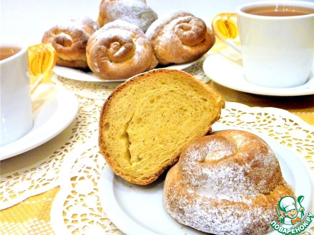 [+5]На минеральной воде с тыквенным пюре. Мне понравилась формовка и сахарная посыпка внутри булочек.Использовала крупный(кристаллический )сахар,надеялась что он не растает полностью...,но...., зато остались сахарные рельефные "дорожки".Большое спасибо за рецепт !!!