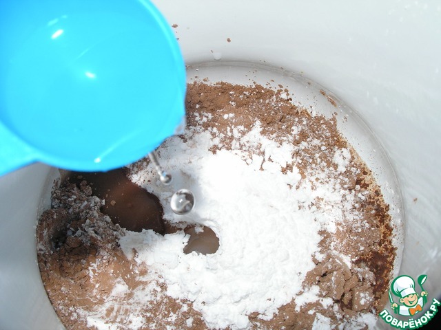 Смешать 2 ст. л. какао-порошка, 0,5 ст. л. картофельного крахмала, 2 ст. л. сахарной пудры и 3,5-4 ст. л. воды. -