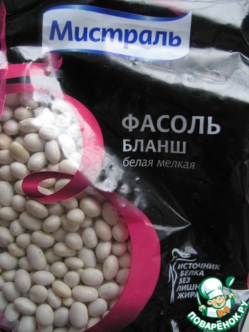 Теперь беру заранее сваренную фасоль ТМ "Мистраль" (бланш, белая мелкая).