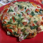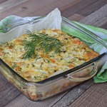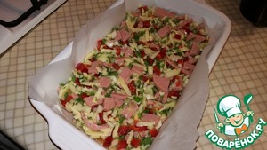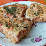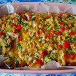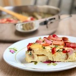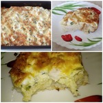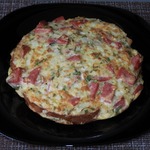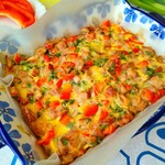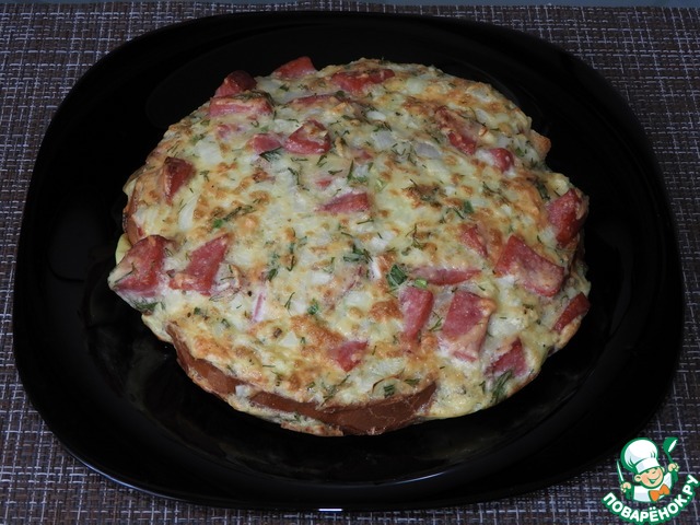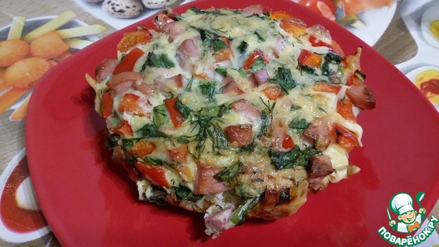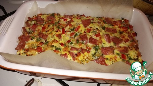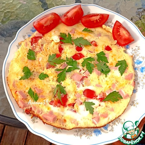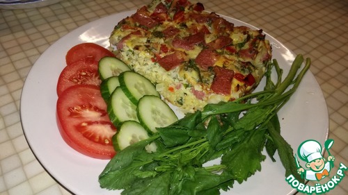 У меня была узкая форма для кекса, поэтому получился узкий и высокий омлет.Из-за того, что высокий и узкий - омлет пекся долго, это надо учитывать, если готовите в будний день перед работой.