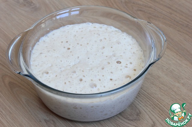 Ставлю миску с опарой в теплое место на 20-30 минут. За это время тесто станет пушистым и хорошо поднимется. -