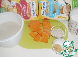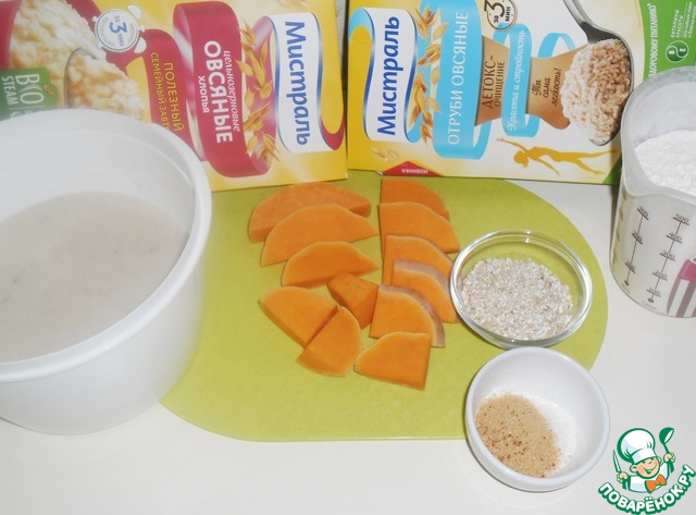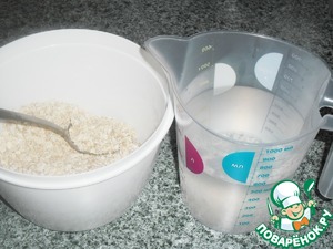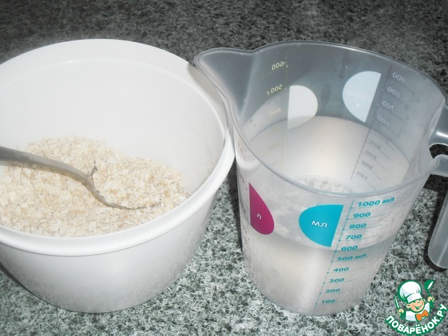 Для начала заранее подготовила овсяные хлопья, у меня цельнозерновые от ТМ Мистраль, приготовленные из цельного зерна, обработанного паром. Их надо залить горячей водой (40-50 градусов), когда масса приостыла добавила дрожжи, пусть они начинают бродить, а хлопья хорошо распарятся.