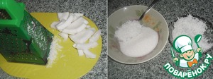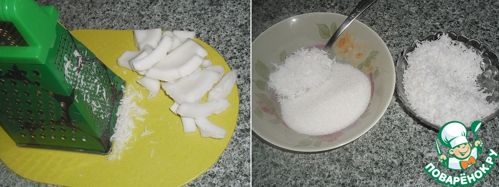 В предыдущем рецепте я рассказала, как я чищу кокос. Не буду утруждать Вас повторным описанием. Кому интересно - ссылка с описанием моего варианта очистки внизу рецепта.