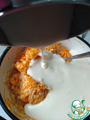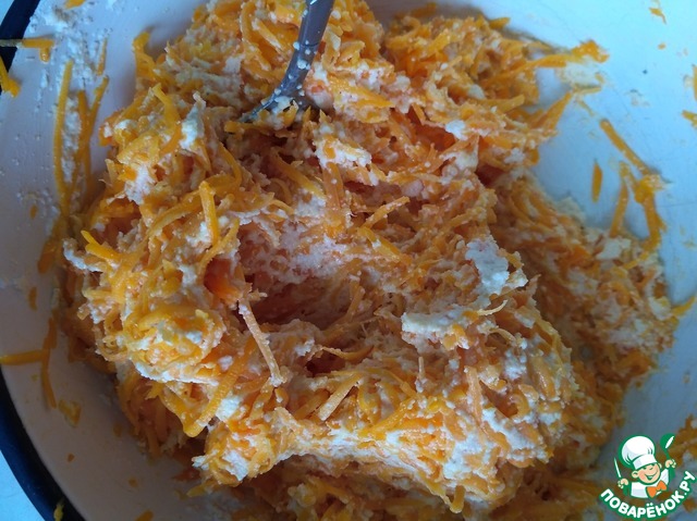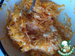 Измельчить на терке лимон и тыкву. Я прямо в миску с манкой и кефиром мелю.