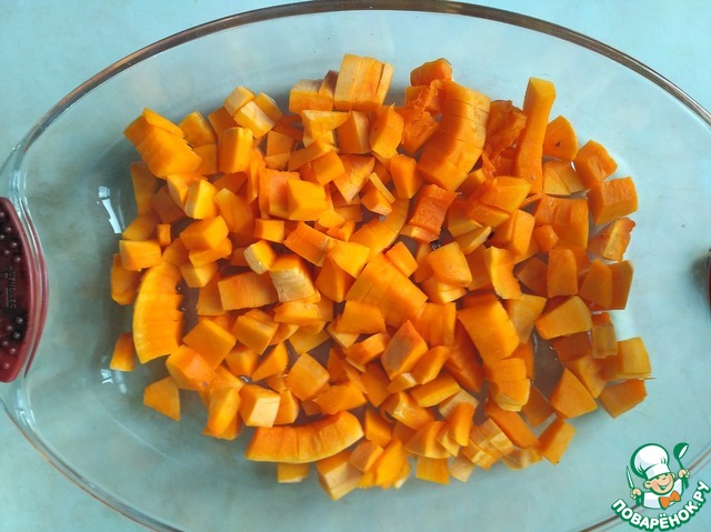 Порезанную кубиками тыкву выложить в смазанную маслом форму
