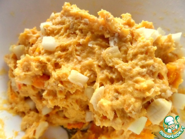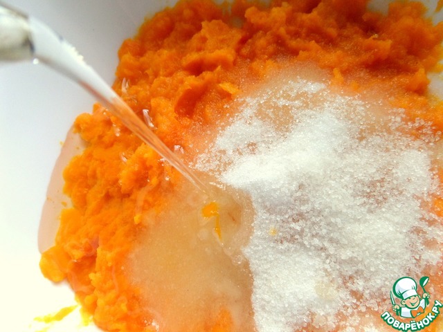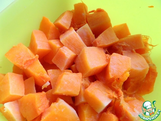 Тыкву можете отварить, но я брала размороженную-она при разморозке стала мягкая, да и сорт такой, который в сыром виде можно есть.
