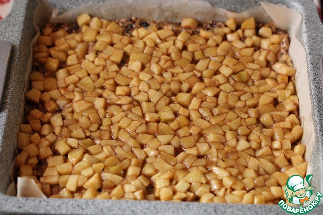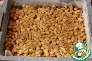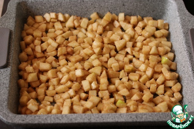 • Форму 20х20 см слегка смазать растительным маслом, выложить в нее яблоки, разровнять.