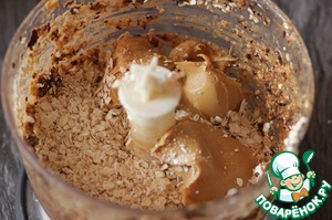 Измельчить хлопья вместе с арахисовым маслом в блендере.