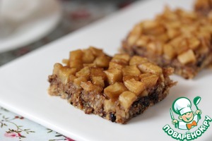 Яблочный слой без карамелизации, скорее всего, развалится. А в "тесто" либо масло, либо мед все-таки надо положить.