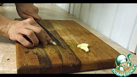 Чеснок можно нарезать, а можно пропустить через чеснокодавку. Тут дело вкуса, если вам нравится чеснок и хотите его очень хорошо чувствовать, то просто измельчите его ножом.