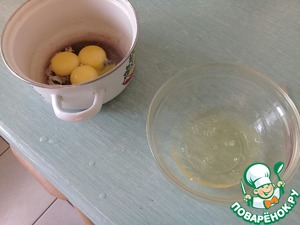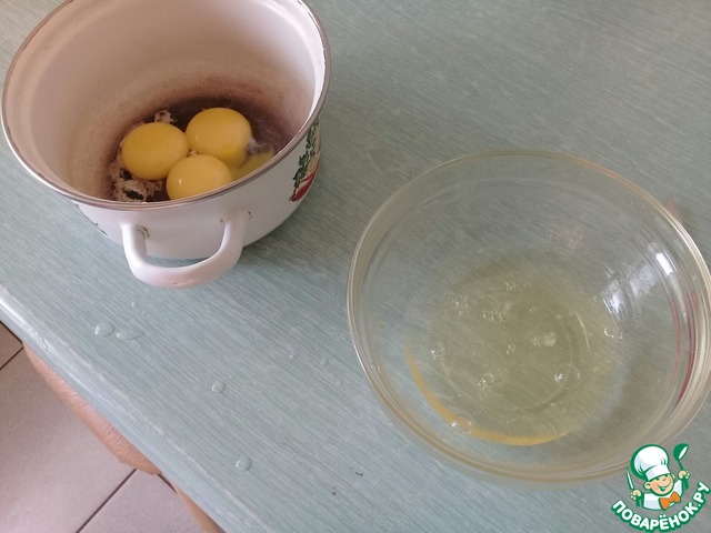 Займемся сначала бисквитом. Отделяем желтки от белков.